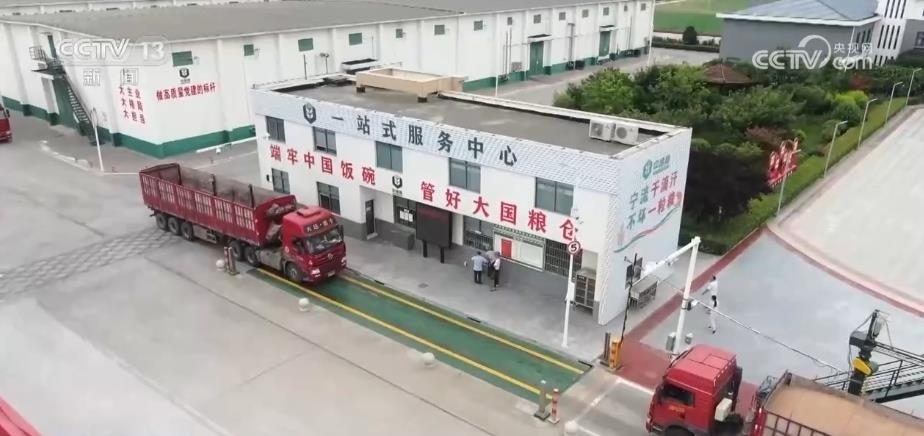 在一座座糧庫(kù)間,記者看到滿載小麥的一輛輛卡車正排著隊(duì)等待卸糧進(jìn)倉(cāng)。