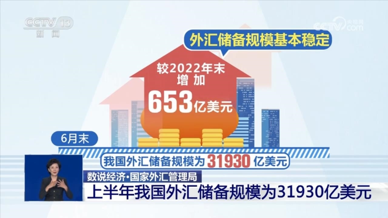 外匯儲(chǔ)備規(guī)模基本穩(wěn)定。截至2023年6月末,我國外匯儲(chǔ)備規(guī)模為31930億美元,較2022年末增加653億美元。