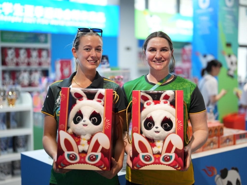 澳大利亞水球隊(duì)的露辛達(dá)·蘇珊和隊(duì)友逛了將近二十分鐘,最終選擇了戴著兔耳朵帽子的兔年版“蓉寶”,因?yàn)椤坝X得這個(gè)造型最可愛”,而當(dāng)大家給她解釋這個(gè)造型的來源時(shí)她才恍然大悟:“原來今年是中國的兔年?那我就知道為什么是這個(gè)造型了!”