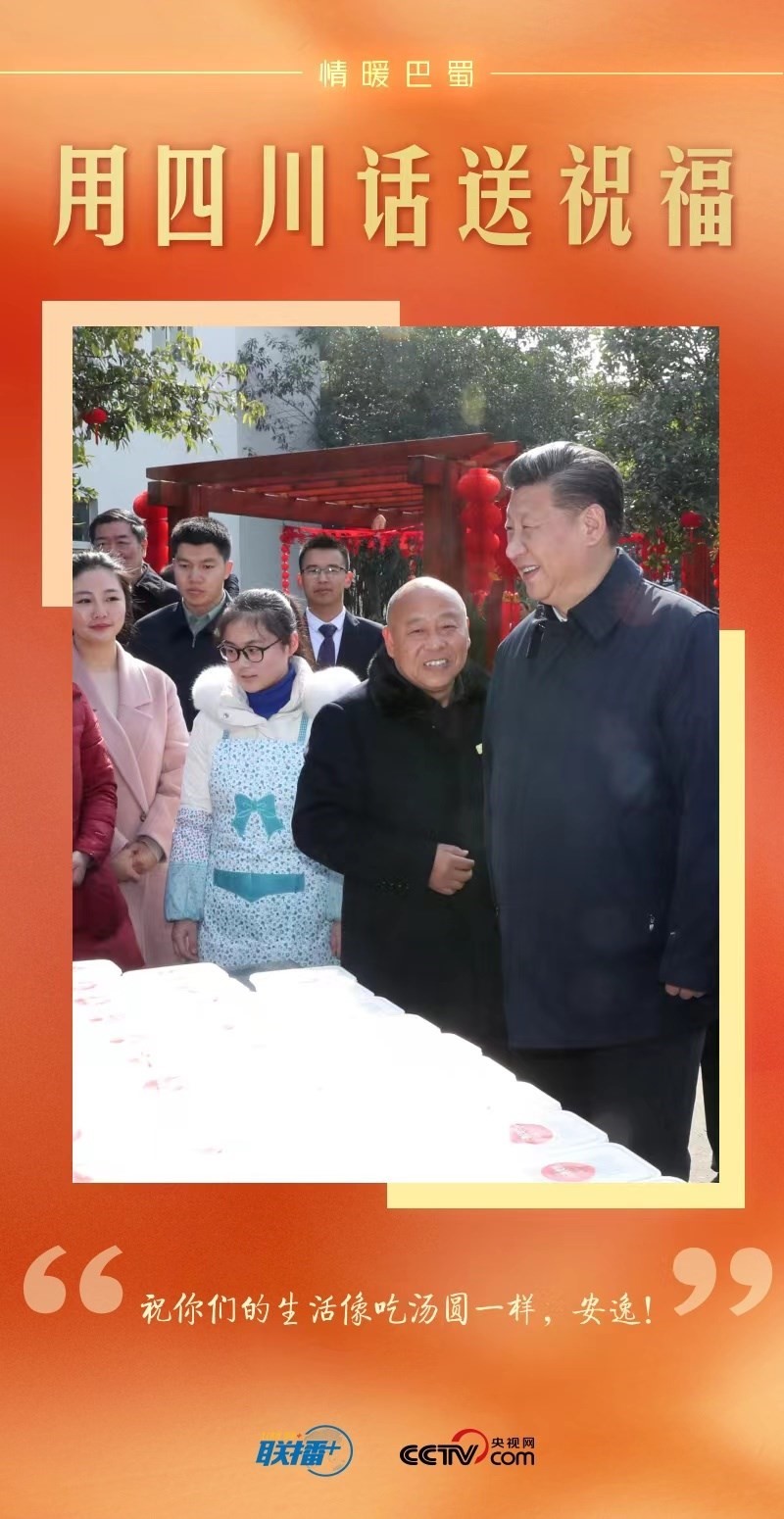 看到有村民在路邊包湯圓,總書記饒有興致地過(guò)去觀看,豎起拇指,用四川話對(duì)大家說(shuō):“祝你們的生活像吃湯圓一樣,安逸!”