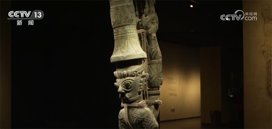 北京大學(xué)考古文博學(xué)院副教授 趙昊:為什么我們不直接把這件器蓋放在這個(gè)尊之上,或者包括那個(gè)持龍人像放在器蓋之上,這涉及到一個(gè)文物安全的問題。因?yàn)橄鄬碚f這些器物本體已經(jīng)有一些變形,第二就是它長期埋在地下,本體已經(jīng)變得比較疏松了,如果我們將它原來整體復(fù)原蓋在一起,重量會(huì)很大,可能對于下面的支撐壓迫比較重。