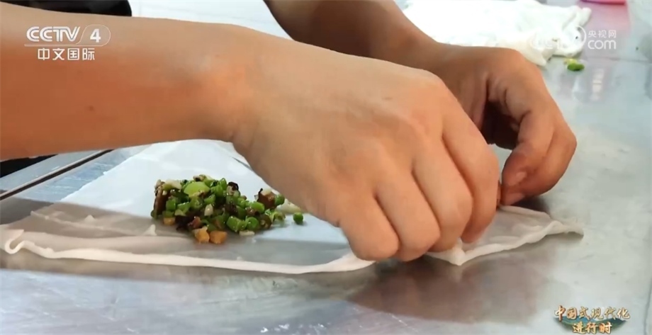 除了“射手王”,網(wǎng)友們還給他起了一個外號叫“卷粉王”。今年34歲的董永恒在縣城開了一家小店,售賣當(dāng)?shù)貍鹘y(tǒng)特色美食卷粉。在球場上他腳底利索,沒想到手上更利落,董永恒一天要包1000多個卷粉。