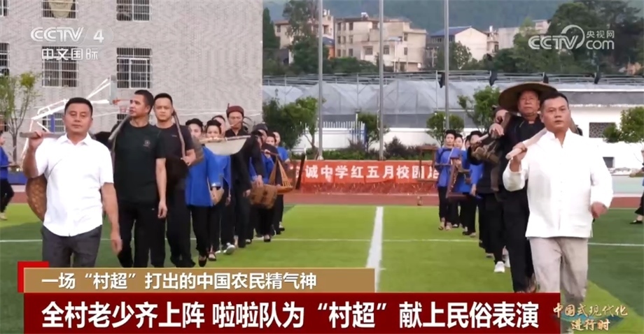 央視網(wǎng)消息:黨的二十大報告指出,中國式現(xiàn)代化是物質(zhì)文明和精神文明相協(xié)調(diào)的現(xiàn)代化。在廣大農(nóng)村地區(qū),農(nóng)民精神文化生活狀況是鄉(xiāng)村振興乃至經(jīng)濟(jì)社會發(fā)展全局的重要衡量指標(biāo)。近年來,“土味”十足的“村BA”“村超”等農(nóng)民自發(fā)舉行的體育賽事火爆全網(wǎng)。正在貴州榕江舉行的“村超”本周六(7月29日)將迎來總決賽,今天的系列節(jié)目《中國式現(xiàn)代化進(jìn)行時》,我們跟隨記者的鏡頭去看看“村超”的比賽盛況。