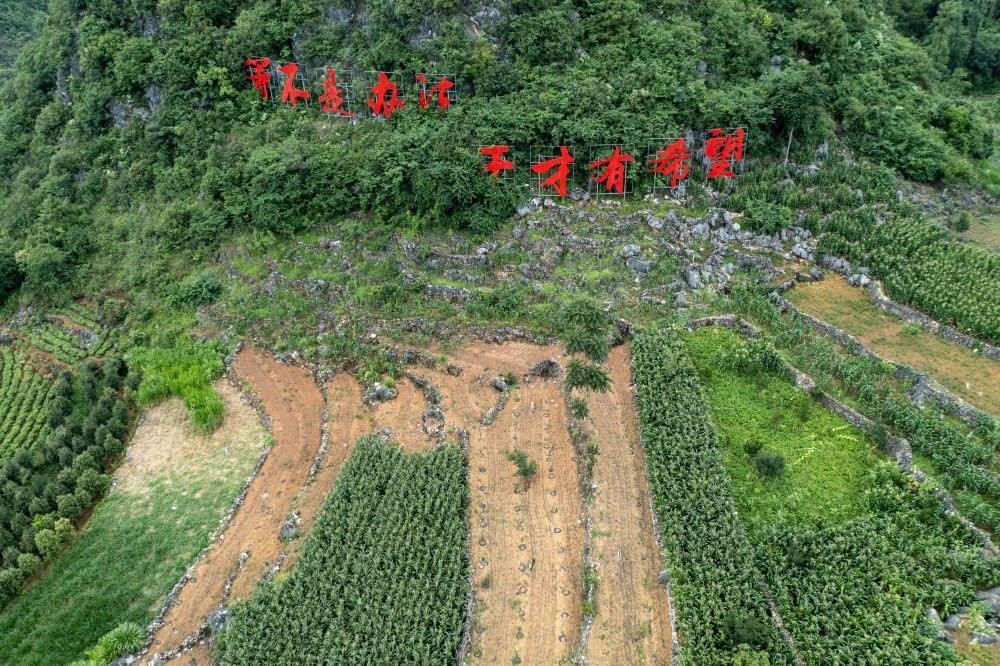 7月27日,一位村民在木者村“摸石谷”中建成的“三?!迸_(tái)地上干農(nóng)活。新華社記者 楊植森 攝