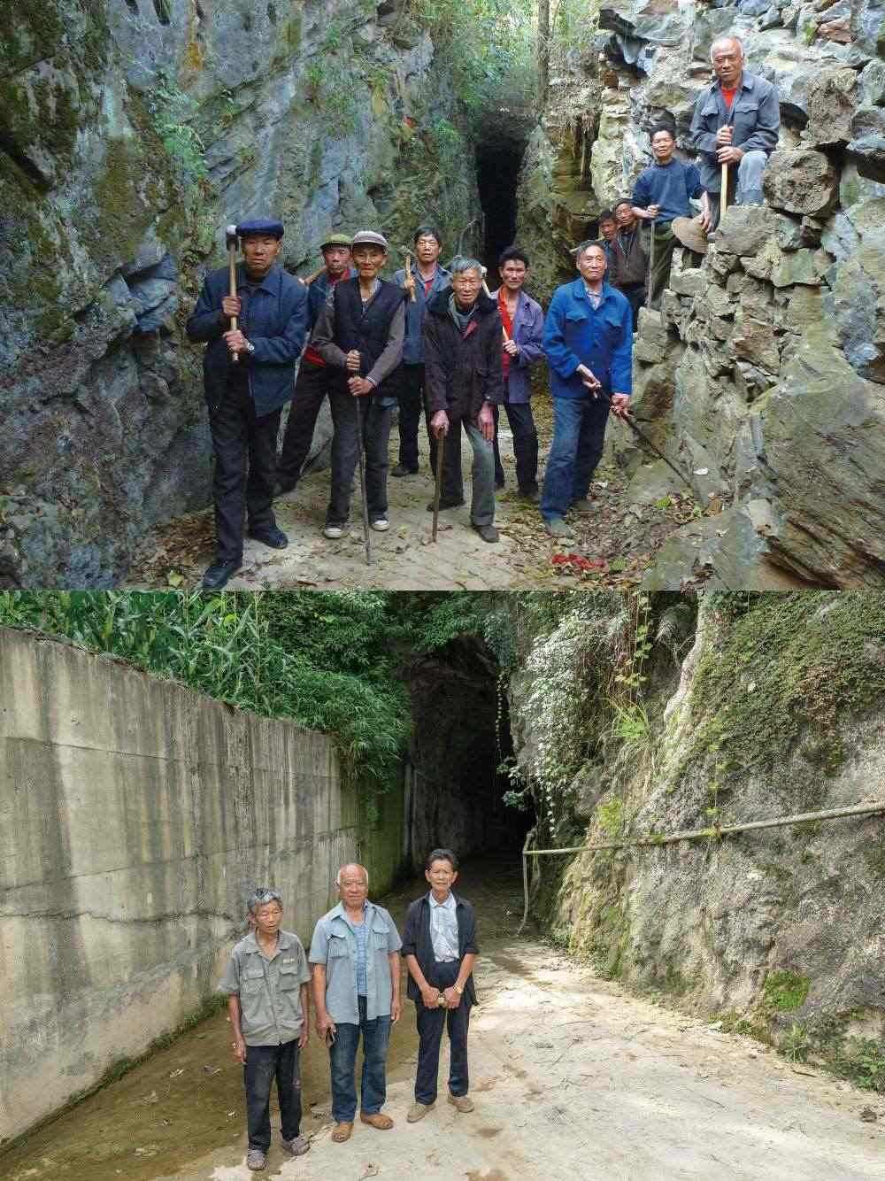 這首生命樂(lè)章的序曲是“人定勝天”:劉家塘村四面環(huán)山,地勢(shì)低洼,多雨季節(jié)洪水泛濫,田地絕收。1962年,村黨支部決定開(kāi)鑿隧洞。隨后,村民開(kāi)始了“驚人之舉”——全村男女老少齊上陣,以鐵錘、鋼釬為主要工具,歷時(shí)近半個(gè)世紀(jì),鑿?fù)烁?.5米、寬1.5米,全長(zhǎng)300米的穿山隧洞,徹底解決了水患。后來(lái),這個(gè)隧洞被命名為“勝天洞”。
