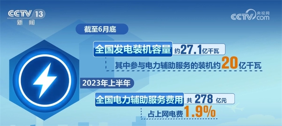 電力輔助服務(wù)是指為維護(hù)電力系統(tǒng)安全穩(wěn)定運(yùn)行、保障電能質(zhì)量、促進(jìn)新能源消納,由市場(chǎng)運(yùn)營(yíng)機(jī)構(gòu)統(tǒng)一組織采購(gòu)調(diào)用的調(diào)峰、調(diào)頻、備用等系統(tǒng)調(diào)節(jié)服務(wù)。截至6月底,全國(guó)發(fā)電裝機(jī)容量約27.1億千瓦,其中參與電力輔助服務(wù)的裝機(jī)約20億千瓦。2023年上半年,全國(guó)電力輔助服務(wù)費(fèi)用共278億元,占上網(wǎng)電費(fèi)1.9%。