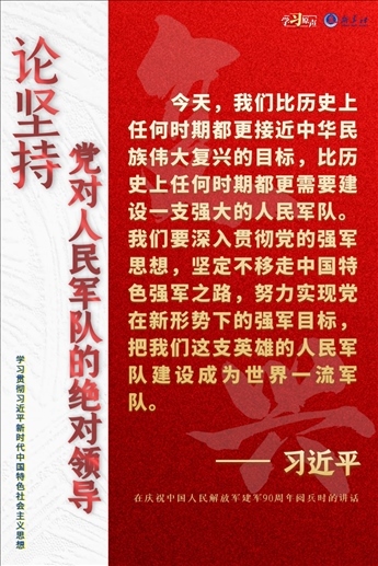 黨對(duì)軍隊(duì)絕對(duì)領(lǐng)導(dǎo)是人民軍隊(duì)建軍之本、強(qiáng)軍之魂。