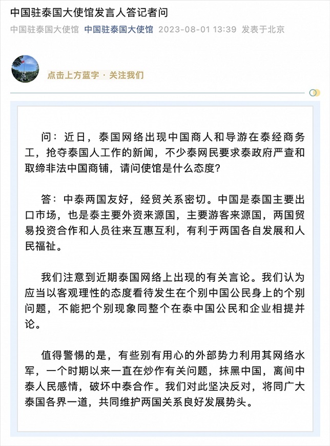 ·中國商人和導游在泰搶奪泰國人工作?泰網(wǎng)民要求嚴查?中使館回應。