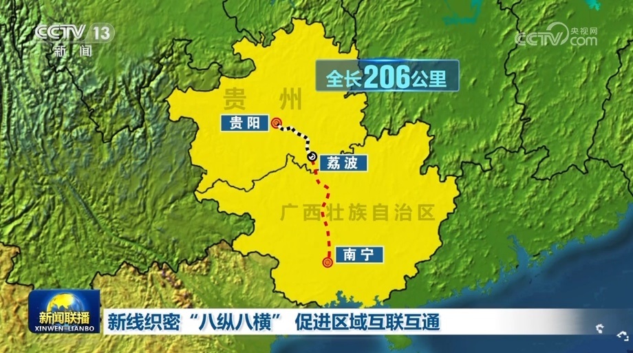 貴南高鐵連接貴陽和南寧,是“八縱八橫”高鐵網(wǎng)包頭至??谕ǖ赖闹匾M成部分。正線全長482公里,是黔桂兩地首條設(shè)計時速達(dá)350公里的高速鐵路。此次開通的貴陽至荔波段,全長206公里,貴陽至荔波最快只需57分鐘。