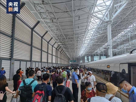 滯留旅客搭乘臨時(shí)列車從沿河城站出發(fā)