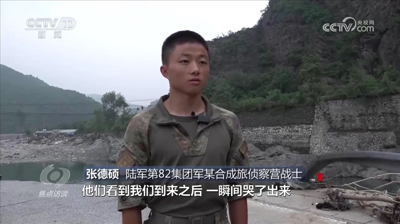 陸軍第82集團(tuán)軍某合成旅偵察營戰(zhàn)士張德碩:“我們進(jìn)到屋里之后,看到她姥姥和她躺在床上,她們看到我們到來之后,一瞬間哭了出來?!?/p>