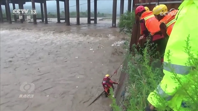 河北武安市南環(huán)東路消防救援站消防員趙亞朋:“水流太快了,直接把身體沖得控制不住。當(dāng)時下水前后一共嘗試了五次,第五次,走到十米的時候,洪水量突然加大,把車輛向下游沖去?!?/p>