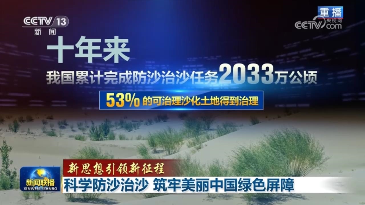 央視網(wǎng)消息(新聞聯(lián)播):習(xí)近平總書(shū)記強(qiáng)調(diào),加強(qiáng)荒漠化綜合防治,深入推進(jìn)“三北”等重點(diǎn)生態(tài)工程建設(shè),事關(guān)我國(guó)生態(tài)安全、事關(guān)強(qiáng)國(guó)建設(shè)、事關(guān)中華民族永續(xù)發(fā)展,是一項(xiàng)功在當(dāng)代、利在千秋的崇高事業(yè)。黨的十八大以來(lái),我國(guó)多措并舉推進(jìn)荒漠化治理,防沙治沙取得巨大成就,進(jìn)一步筑牢美麗中國(guó)綠色屏障。