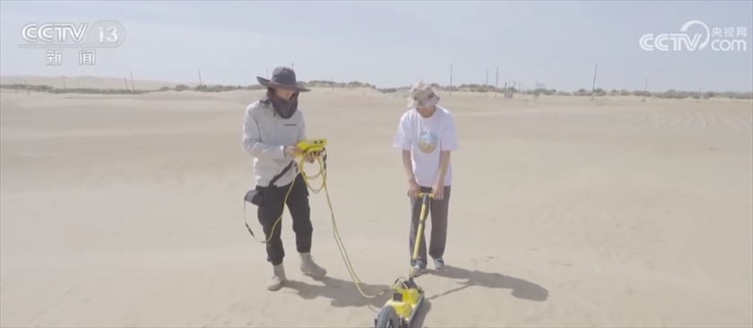 總臺央視記者 任梅梅:這里是吐魯番盆地的荒漠地區(qū),在我身后科考隊員剛剛架設(shè)起了這樣一座自動氣象站,配合空中無人機(jī)和衛(wèi)星遙感等一系列科技手段,可以實(shí)現(xiàn)“天空地一體化”監(jiān)測。