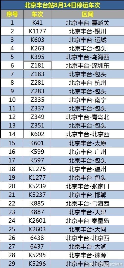央視網(wǎng)消息:據(jù)@北京西站官方微博 消息,受水害影響,8月14日北京西站、北京豐臺站部分列車停運,已購買停運列車車票的旅客,可于30日內(nèi)辦理全額退票手續(xù)。