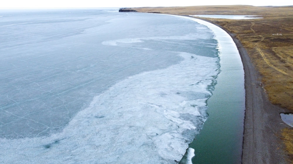 這是4月17日拍攝的呼倫湖開湖景象(無人機照片)。新華社記者 王楷焱 攝