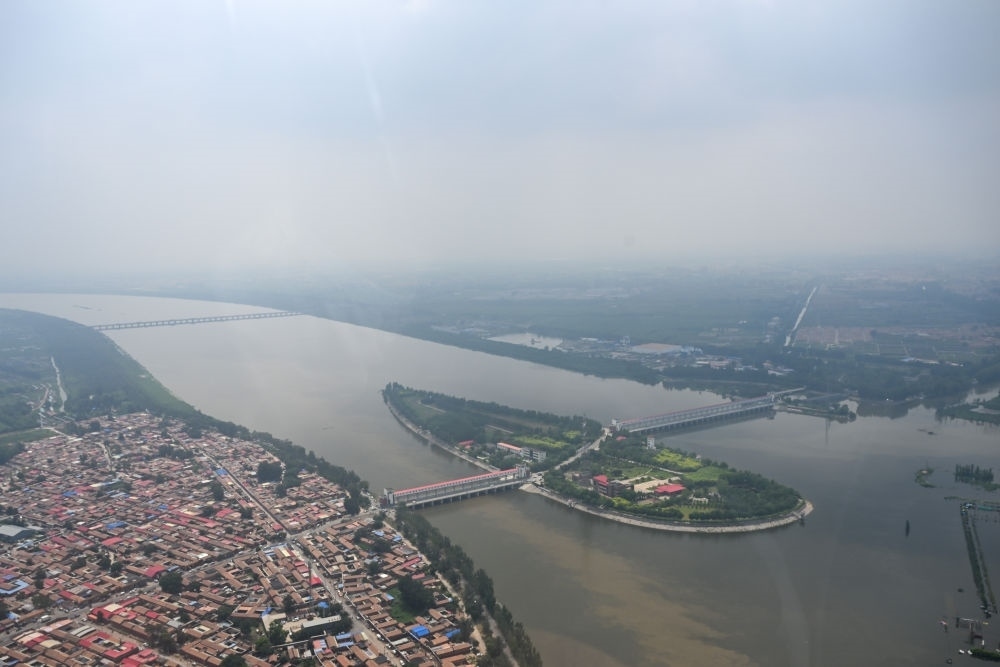 這是從直升機(jī)上拍攝的獨流減河進(jìn)洪閘,大清河與子牙河在此匯入獨流減河(8月8日攝)。新華每日電訊記者孫凡越攝