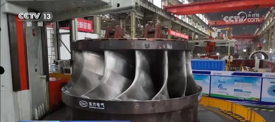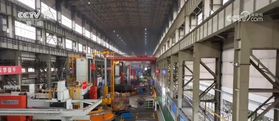 總臺記者 蔣林:我現(xiàn)在就是在位于四川德陽的東方電機的生產(chǎn)車間,這里也是目前中國最為重要的能源裝備的制造基地?,F(xiàn)在一天全國所發(fā)的電量里面,每4度有1度就來自于這里的設(shè)備。而且根據(jù)我們掌握的最新的生產(chǎn)數(shù)據(jù),也能夠感覺到目前中國能源發(fā)展的新趨勢。截止到2023年的6月底,在過去一年當(dāng)中,這里所生產(chǎn)的設(shè)備里有90%都是清潔能源的設(shè)備。比如,我身旁的這個大家伙,它是華龍一號發(fā)電機組的轉(zhuǎn)軸,而像這樣的大塊頭在這個廠房里面比比皆是。
