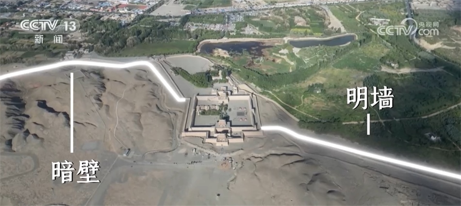 嘉峪關(guān)關(guān)城景區(qū)講解員 馬雪:站在這個地方,大家就可以看到嘉峪關(guān)關(guān)城從這里向南邊一直延伸出去了一道邊墻,這一段城墻因?yàn)楸晃鬟叺臄橙艘谎劬涂梢园l(fā)現(xiàn),所以稱之為“明墻”,還有一道防線,我們現(xiàn)在看不見,它叫作“暗壁”,從東柵門的烽火臺處一直延伸到黑山的半山腰,人無法攀登的地方。那這一段“明墻暗壁”的修建,屬于嘉峪關(guān)的雙重防線,體現(xiàn)了中國古代工匠的智慧。