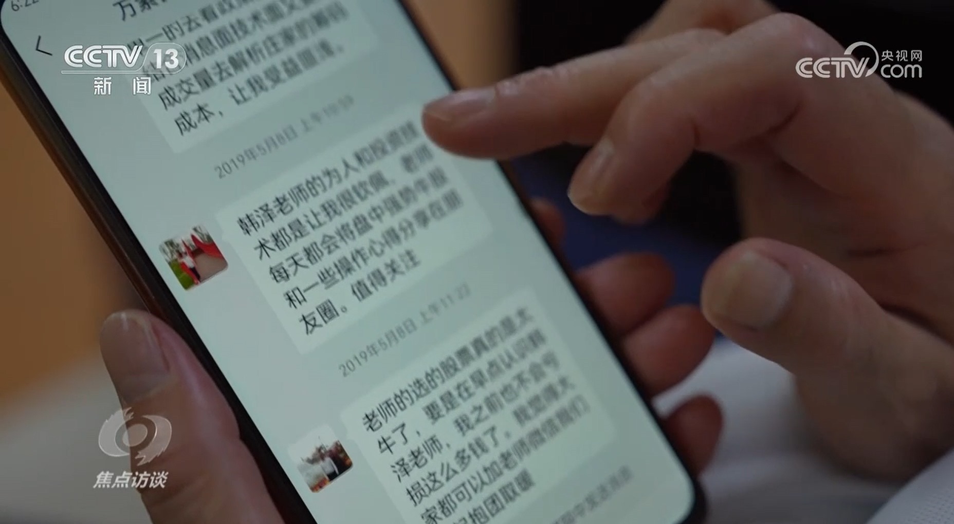 王敏:“比如說客戶發(fā)過來問這只股票怎樣分析,我們就復(fù)制這個客戶的話,然后發(fā)送到專門有個群,是其他團(tuán)隊,就會有人回復(fù),我們就用‘韓澤’這個號回復(fù)人家。”