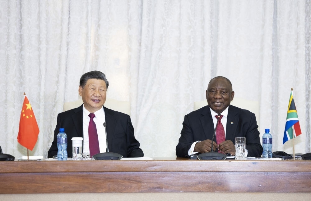 應(yīng)南非共和國總統(tǒng)西里爾·拉馬福薩邀請,中華人民共和國主席習(xí)近平于2023年8月22日對南非共和國進行國事訪問。