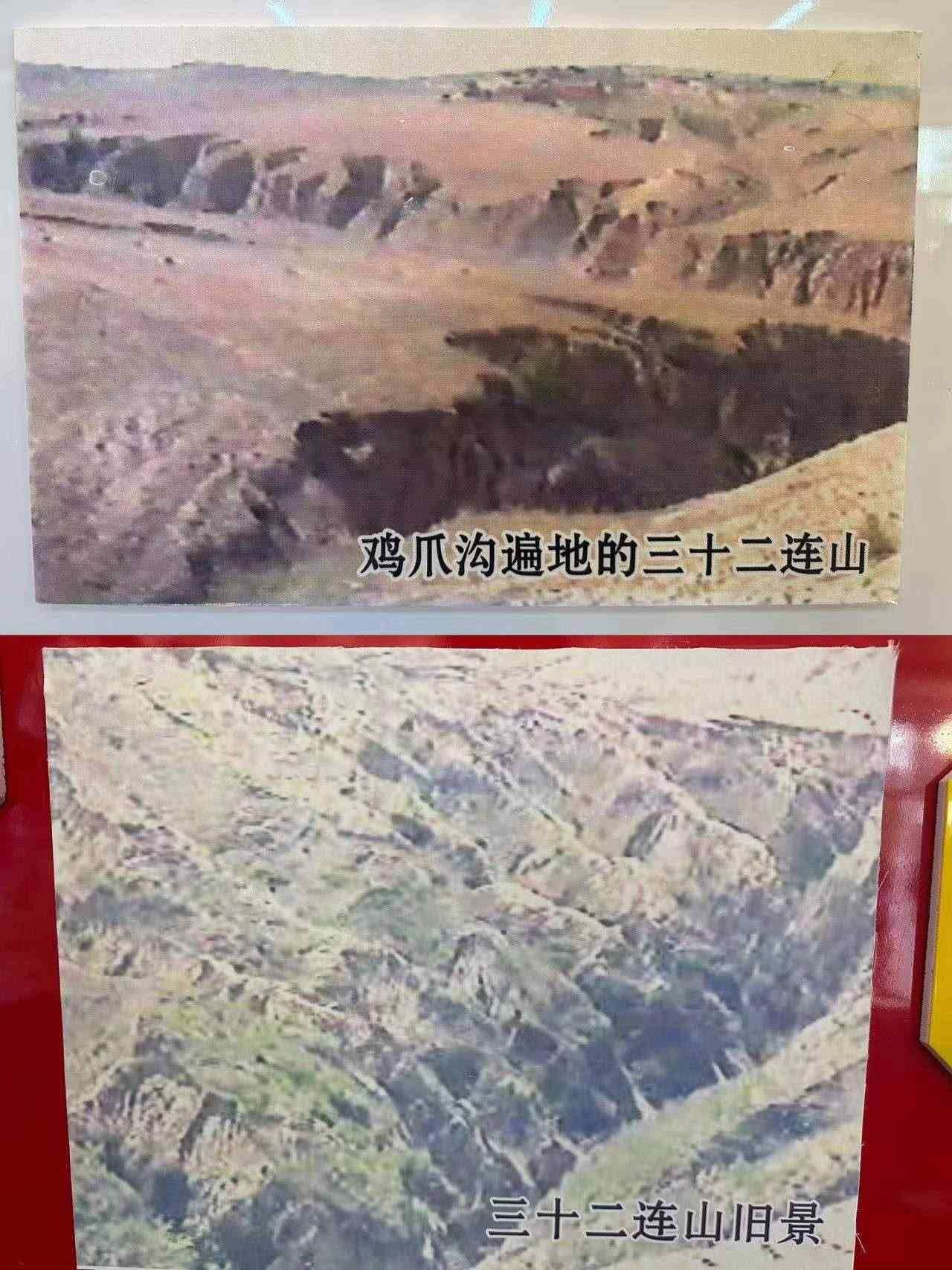 曾任三十二連山小流域綜合治理工程總指揮的韓旭東回憶說,這里曾經(jīng)黃沙漫天、洪水泛濫,刮起風沙,白天能見度極低,一場風沙能把剛長起來的苗蓋死,是典型的“禿山光嶺干河套,牛羊啃草滿山繞”。