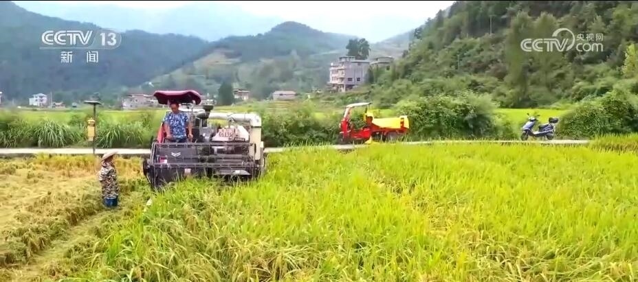 央視網(wǎng)消息:近段時(shí)間,重慶酉陽(yáng)土家族苗族自治縣的26萬(wàn)畝水稻陸續(xù)進(jìn)入成熟期,種植戶(hù)們駕駛著收割機(jī)穿梭在田間,搶收水稻,確保顆粒歸倉(cāng)。