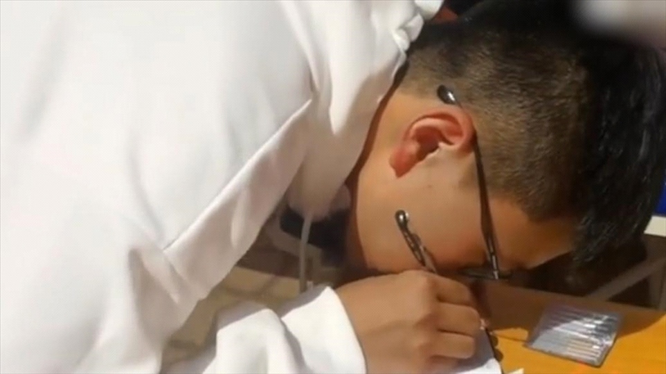 8月30日,山東中醫(yī)藥大學(xué)針灸推拿學(xué)院迎來一個(gè)特殊的新生。因?yàn)榍嗌倌挈S斑變性,欒新業(yè)從初二開始就只能借助放大鏡讀書。今年他以562分的成績考進(jìn)山東中醫(yī)藥大學(xué)。