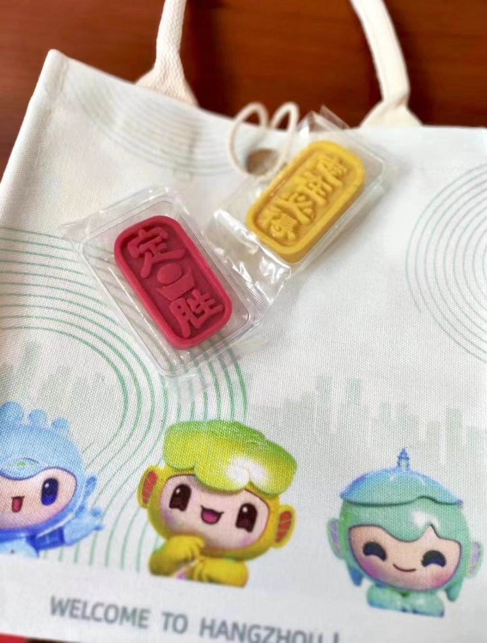 “志愿者們可以在手賬本上記錄志愿服務過程中的點點滴滴,留下美好的亞運回憶;特制的行李卡牌可以幫助他們標記自己的物品和行李;而一紅一黃兩塊定勝糕上面分別寫有‘定勝’以及‘志在必得’的字樣,則是為他們加油打氣?!焙贾輥嗊\村人事與志愿者管理中心副主任、浙江外國語學院團委書記邱萍說。