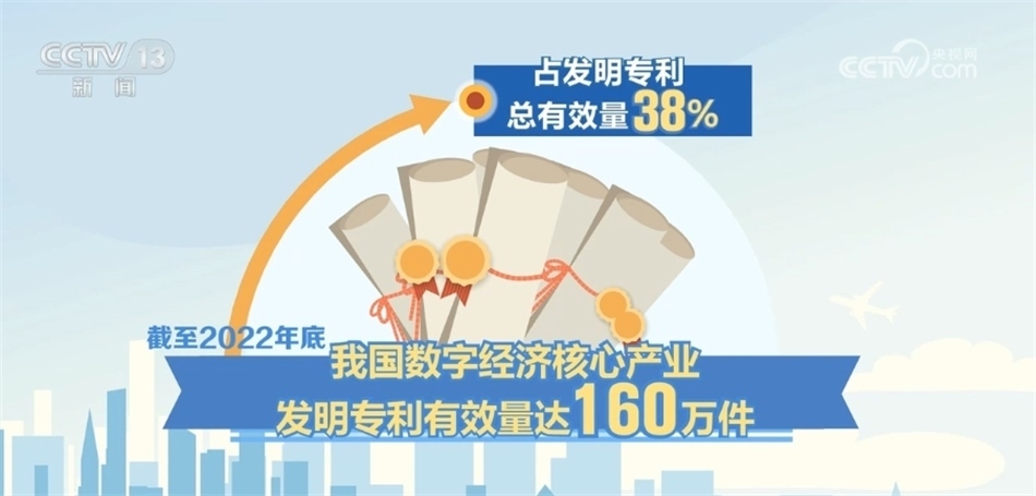 ?????? 據(jù)了解,2016年—2022年,我國數(shù)字經(jīng)濟(jì)核心產(chǎn)業(yè)發(fā)明專利授權(quán)量年均增速達(dá)18%。截至2022年底,我國數(shù)字經(jīng)濟(jì)核心產(chǎn)業(yè)發(fā)明專利有效量達(dá)160萬件,占發(fā)明專利總有效量的38%,有力支撐了產(chǎn)業(yè)數(shù)字化轉(zhuǎn)型升級。