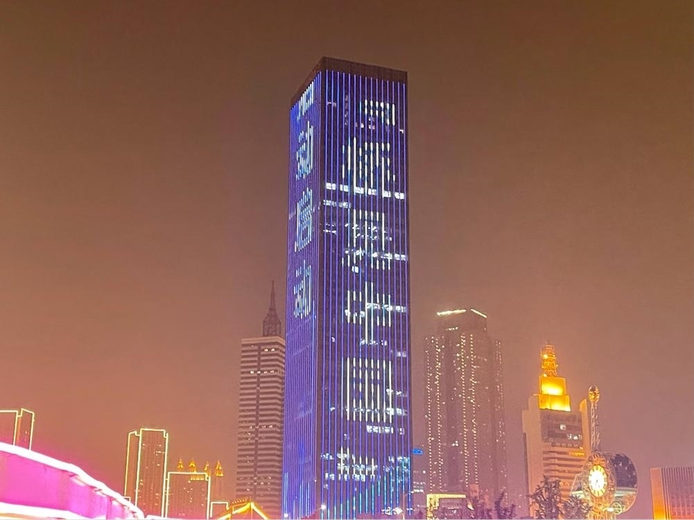 (大廈樓體亮起“橋見(jiàn)中國(guó)”字樣 央視網(wǎng)記者 豆瑞華攝)