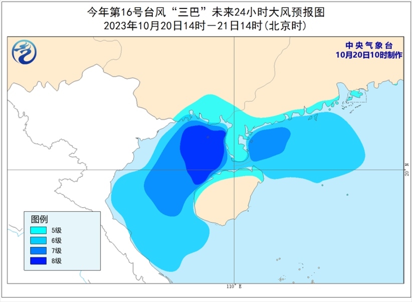 央視網消息:中央氣象臺10月20日10時繼續(xù)發(fā)布臺風藍色預警: