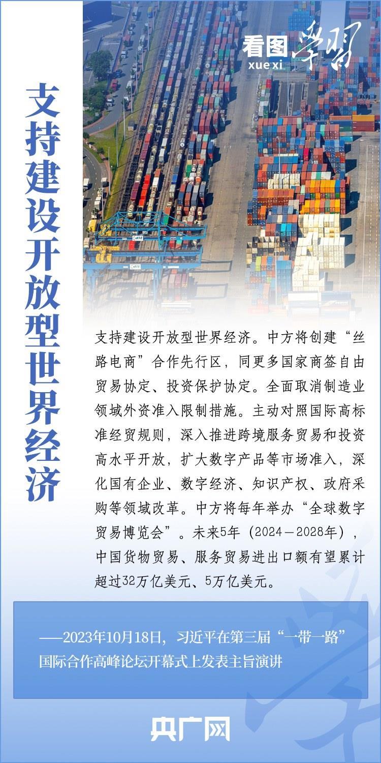 10月18日,習(xí)近平主席出席第三屆“一帶一路”國際合作高峰論壇開幕式并發(fā)表主旨演講,宣布中國支持高質(zhì)量共建“一帶一路”的八項(xiàng)行動(dòng),強(qiáng)調(diào)中方愿同各方深化“一帶一路”合作伙伴關(guān)系,推動(dòng)共建“一帶一路”進(jìn)入高質(zhì)量發(fā)展的新階段,為實(shí)現(xiàn)世界各國的現(xiàn)代化作出不懈努力。一起來學(xué)習(xí)!