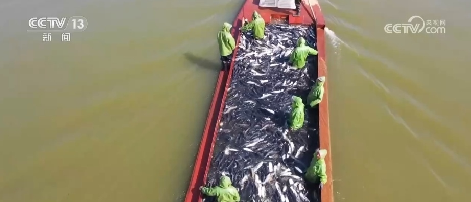 據(jù)了解,大明湖水域面積達(dá)到12.8萬畝,是江西第二大的內(nèi)陸湖泊,十分適合發(fā)展水產(chǎn)養(yǎng)殖。養(yǎng)殖的品種以青魚、草魚、鰱魚、鳙魚“四大家魚”為主。秋捕開始時(shí),漁業(yè)工人用特制的漁網(wǎng)將魚兒驅(qū)趕到特制的長(zhǎng)條通道里,再逐步收起漁網(wǎng),工人們?cè)诹硪欢俗屑?xì)挑選活魚的品種和大小,體型不達(dá)標(biāo)的魚會(huì)被挑出來,放回湖中繼續(xù)養(yǎng)。據(jù)現(xiàn)場(chǎng)工人介紹,2023年因?yàn)轱L(fēng)調(diào)雨順,大明湖迎來一個(gè)豐收年,捕獲上來的活魚一般都在4斤以上,全年總產(chǎn)量預(yù)計(jì)超過200萬公斤。