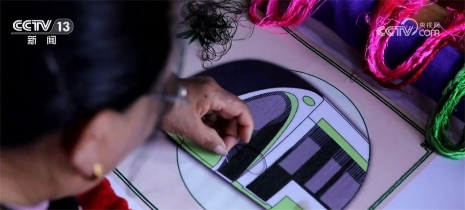 為了拓展鄉(xiāng)村產(chǎn)業(yè)發(fā)展,十八洞村把精準(zhǔn)扶貧的經(jīng)驗用到了苗繡產(chǎn)業(yè)發(fā)展上,對癥下藥,決定通過創(chuàng)新打開傳統(tǒng)苗繡市場。2022年年初,村干部遠(yuǎn)赴重慶酉陽將當(dāng)?shù)孛缋C領(lǐng)頭人陳國桃請進(jìn)村子,發(fā)展機繡,并與湘西民族職業(yè)技術(shù)學(xué)院建立校企聯(lián)合創(chuàng)新機制,設(shè)計新的圖案、樣式和類別。