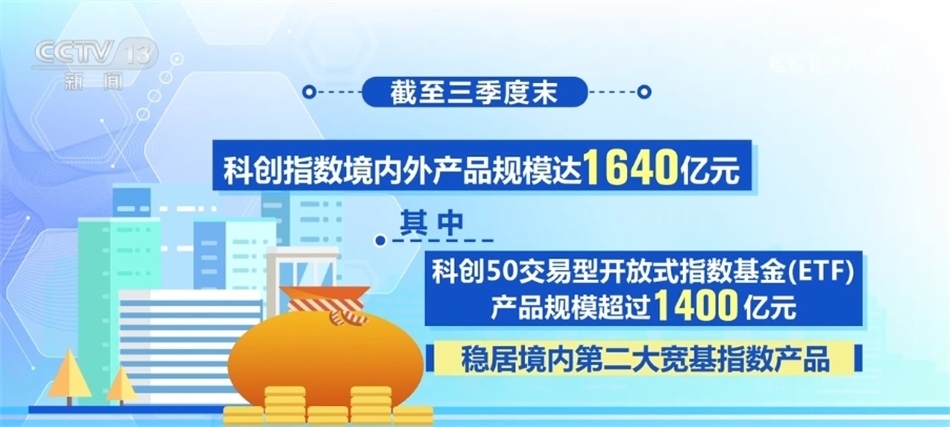 數(shù)據(jù)顯示,截至三季度末,科創(chuàng)指數(shù)境內(nèi)外產(chǎn)品規(guī)模達(dá)1640億元,其中,科創(chuàng)50交易型開放式指數(shù)基金(ETF)產(chǎn)品規(guī)模超過(guò)1400億元,穩(wěn)居境內(nèi)第二大寬基指數(shù)產(chǎn)品。