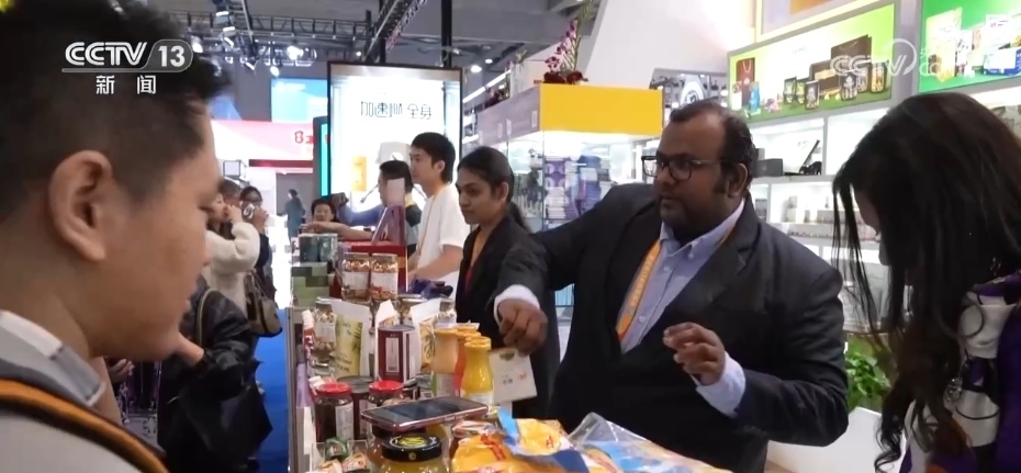 晉蘭加說的地方是在“四葉草”旁邊的進博會常年展示交易平臺。2023年,通過合作洽談,他的展品在進博會之后可以直接變成交易平臺里的商品。在那兒,進博會永不落幕。