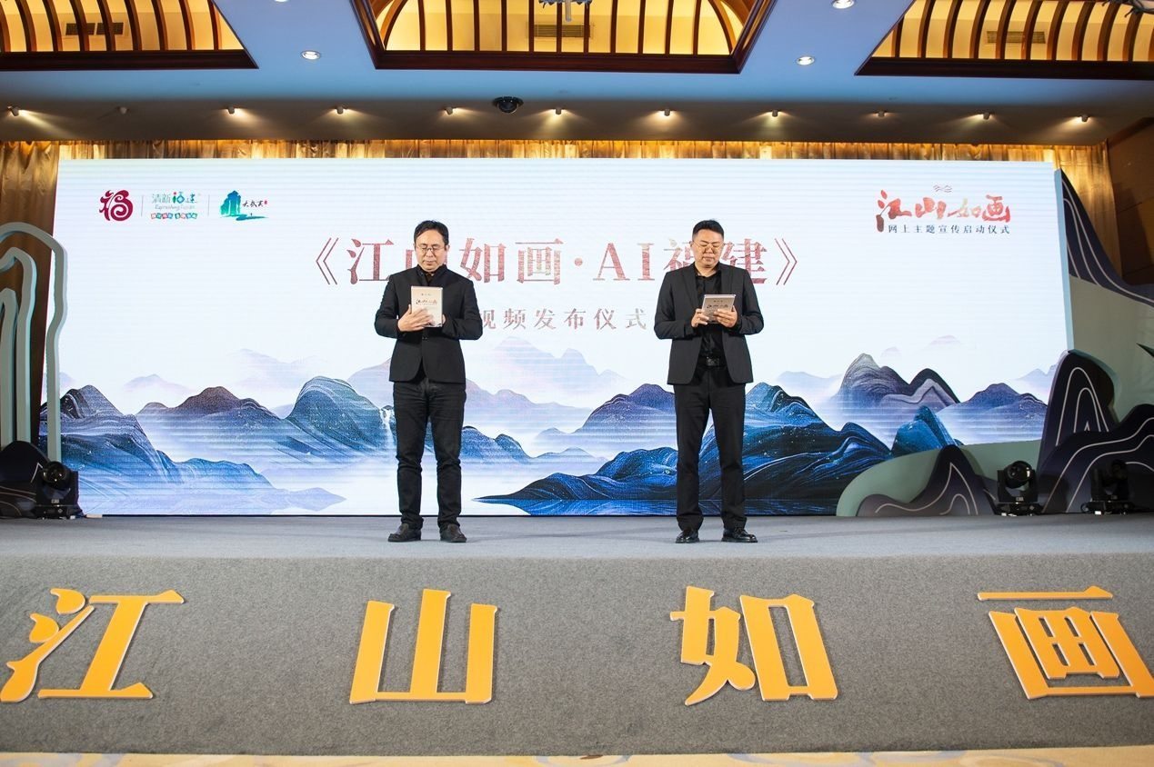 啟動儀式上,中國新聞社融媒體中心副主任、中國新聞網(wǎng)副總編輯宋方燦攜手清華大學新聞與傳播學院元宇宙文化實驗室負責人杭凱共同發(fā)布“江山如畫·AI福建”,以人工智能方式描繪充滿活力與包容的福建。