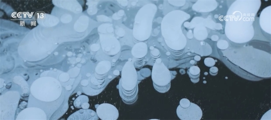 據(jù)了解,“冰泡”形成的主要原因是湖中茂盛的水草在衰敗腐爛之后釋放出沼氣。冬季,在氣源充足的情況下,當(dāng)氣溫從0℃跌落至零下20℃后,一個(gè)個(gè)上升的氣泡還來(lái)不及“跑”出湖面,便被冰封在湖水之中。
