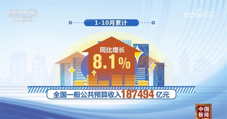 最新數(shù)據(jù)顯示,1—10月,全國一般公共預(yù)算收入187494億元,同比增長8.1%。其中,稅收收入157841億元,同比增長10.7%;非稅收入29653億元,同比下降3.8%。