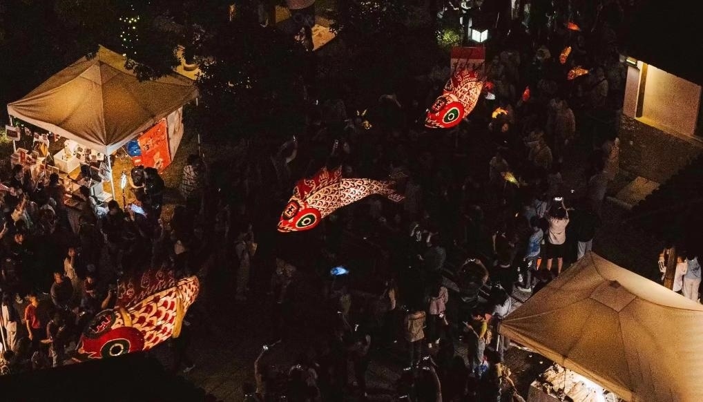 中秋國(guó)慶長(zhǎng)假期間,汪滿田魚燈參加了蘇州石湖景區(qū)的手作藝術(shù)節(jié)。(張小君 攝)