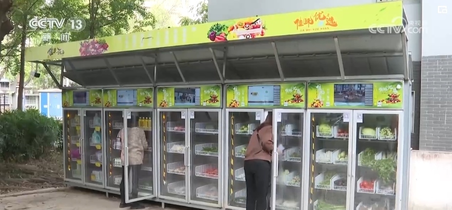 在四川中江縣城的這個(gè)小區(qū)門(mén)口,記者看到一排無(wú)人售貨柜擺放在院落一角。售貨柜里,擺放著20余種蔬菜和副食品。一旁的生鮮自提柜里,則提供冷鏈產(chǎn)品線上下單、線下自提服務(wù)。這種24小時(shí)的便利提貨柜,實(shí)現(xiàn)了消費(fèi)者消費(fèi)升級(jí)的需求。