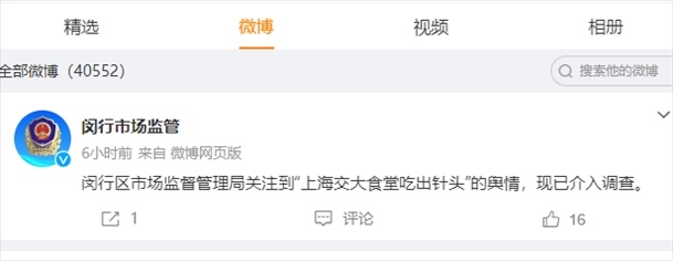 ·上海交通大學(xué)回應(yīng)“食堂飯菜里吃出1.5厘米針頭”:給豬打疫苗的針斷在骨頭里。上海閔行區(qū)市場(chǎng)監(jiān)督管理局已介入調(diào)查。