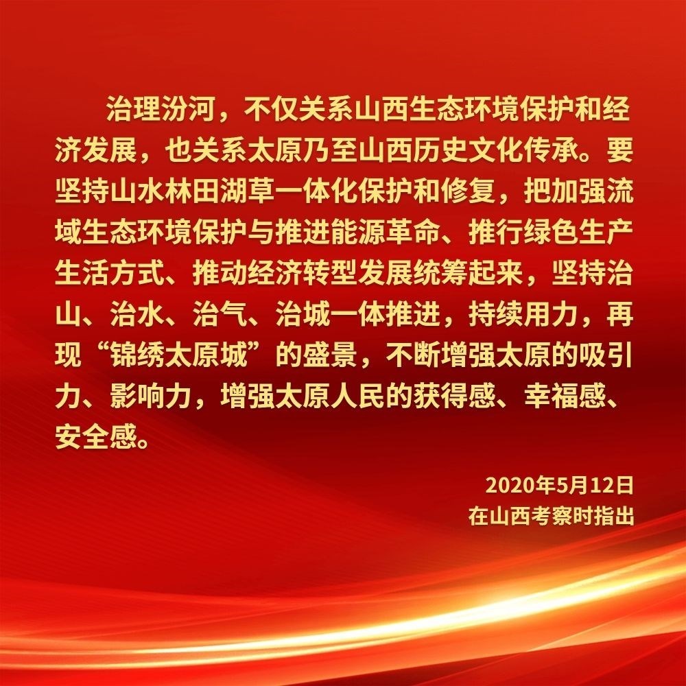 2020年5月12日,習(xí)近平在汾河太原城區(qū)晉陽(yáng)橋段考察汾河水治理及沿岸生態(tài)保護(hù)、城市環(huán)境建設(shè)等情況。