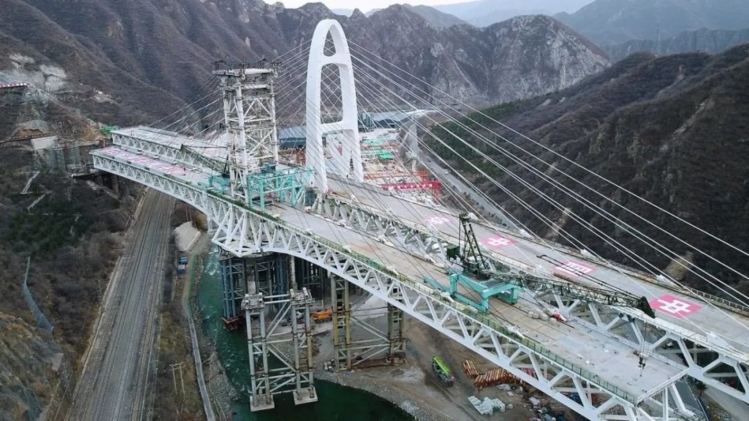 央視網(wǎng)消息:據(jù)“北京門(mén)頭溝”公眾號(hào)消息,11月28日下午,國(guó)道109新線(xiàn)高速公路安家莊特大橋完成重要標(biāo)志性節(jié)點(diǎn)施工建設(shè)任務(wù),全世界首例萬(wàn)噸曲線(xiàn)鋼桁梁斜拉橋順利實(shí)現(xiàn)雙幅同步空中轉(zhuǎn)體,為京西再添新地標(biāo)。