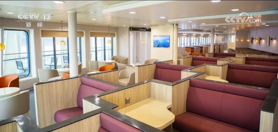 不僅操作靈巧、動(dòng)力強(qiáng)勁,船上還為旅客提供了游戲區(qū)、兒童區(qū)、餐飲區(qū)等超過1萬平方米的公共活動(dòng)區(qū)域。通過建立完整的產(chǎn)業(yè)鏈,內(nèi)裝方面已實(shí)現(xiàn)了從設(shè)計(jì)、制造、安裝全過程100%國(guó)產(chǎn)化。