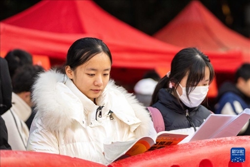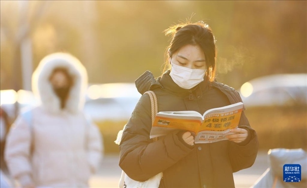12月23日,在湖南省長(zhǎng)沙市,考生在湖南農(nóng)業(yè)大學(xué)考點(diǎn)排隊(duì)時(shí)抓緊復(fù)習(xí)。