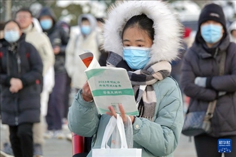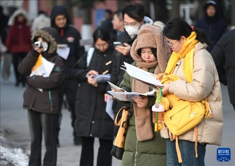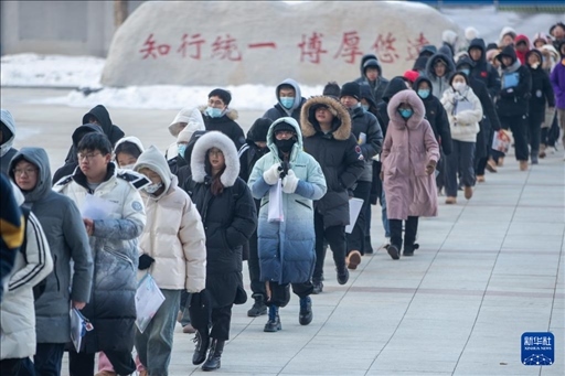 12月23日,在黑龍江省哈爾濱市,考生在哈爾濱理工大學(xué)考點(diǎn)排隊(duì)進(jìn)入考場(chǎng)。