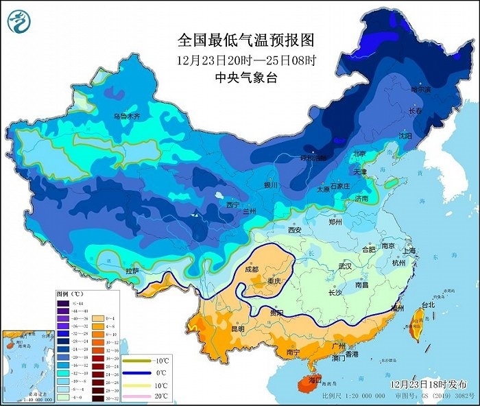 央視網(wǎng)消息:據(jù)中央氣象臺(tái)網(wǎng)站消息,中央氣象臺(tái)12月23日18時(shí)繼續(xù)發(fā)布低溫藍(lán)色預(yù)警:預(yù)計(jì),23日20時(shí)至25日08時(shí),江淮、江南、華南以及山東西北部和半島地區(qū)、河北南部和西北部、山西北部、陜西北部等地日最低氣溫較歷史同期偏低5~7℃,其中浙江中部、江西中部等地偏低7℃以上,最低氣溫0℃線將位于貴州南部至華南北部一帶。