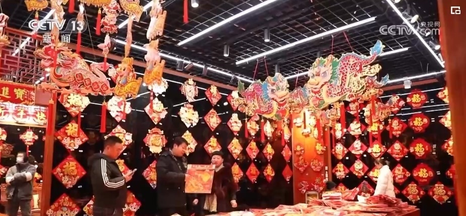 在浙江義烏國際商貿(mào)城,來自全國各地的采購商們抓緊選購著年貨。市場里的龍?jiān)禺a(chǎn)品頗受客商們歡迎,對聯(lián)、年畫、福字、紅包等產(chǎn)品,將從浙江義烏發(fā)往全球各地。
